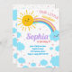 Little Sunshine Rainbow Clouds Pink Sun Birthday Invitation