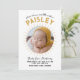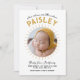 This beautiful Little Sunshine birth announcement features a bold, retro graphic design. Add your photo to the circlular sunshine design on the front of the welcome baby announcement and fill in with all of your birth details to let family and friends know your little sunshine has arrived! Back side features an arch photo collage template to add three more of your favorite newborn portrait photos and a short message. Share your happy news with this stylish introduction for family and friends. All elements of this card are fully customizable and available for download for a hassle free, affordable option to spread your happy news! Available in multiple colorways. Make it uniquely yours today!