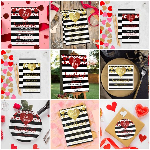 Celebrate in style with these super trendy real gold foil pressed love hearts "little sweetheart" baby shower invitations. The design features a modern black and white striped background with real gold foil love hearts and matching typography wording. Perfect for anyone having a baby shower on or around Valentin's day. Matching baby shower items can be found in the collection.
