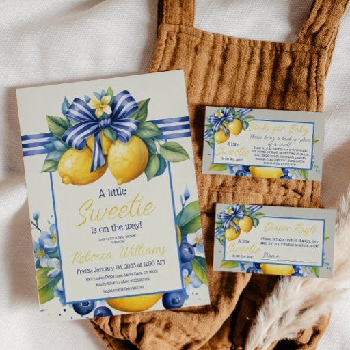 Little Sweetie Blue Bow Tile Lemon Baby Shower Invitation