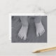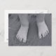 Postcard with black and white photo of little feet in the sand with the water touching the toes. Customizable.