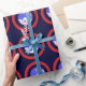 Deep blue,red,and white patterned wrapping paper for Christmas. Bethlehem icon makes a seasonal design. This version is improved and updated to refine the image.