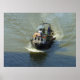 A little fishing trawler goes chugging out to sea at Cardiff Bay Harbor.