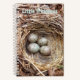 For bird and nature lovers! Spiral bound notebook that features both front and back covers with the photo image of a bird nest with little, blue and brown, mottled eggs. Perfect size for use as a journal for your little treasures or for just keeping notes. Select your notebook style options.