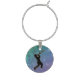 Little Trombone Guy Jazz Player Wine Charm. Black trombonist on a glittery blue green lavender charm. Get the whole set or mix and match. A great gift for your favorite Trombone player, musician or music lover, and a hit a your next party.