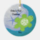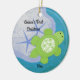 A ocean with starfish and a sweet little green turtle swimming around. Add baby's name and the date as desired.