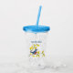 This acrylic drink tumbler with straw and lid has a cute little tweeting red and blue bird sitting on a branch with bright yellow flowers. Customise your text with the template on the front and back.