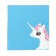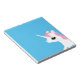 A notepad featuring an adorable vector illustration of a white Unicorn with a flowing pink mane on a blue background.