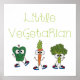 If your child loves veggies or is a vegetarian, you'll love this cute veggie design with text that reads Little Vegetarian and has a green pepper, carrot, and broccoli with eyes and smiles!