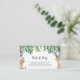 Add a special touch to your safari-themed baby shower with a "Little Wild One" Books for Baby enclosure card. Featuring playful safari animals like lions, elephants, and giraffes, this card invites guests to bring a cherished book instead of a traditional card, helping to build the baby’s first library. The design, adorned with earthy tones and jungle-inspired accents, perfectly complements your safari theme, while the message adds a personal and thoughtful element to the celebration. It's a sweet way to encourage a love of reading as you welcome your little wild one into the world!