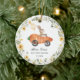 This adorable ceramic ornament features a cute rabbit riding a carrot car and lush wildflower wreath.