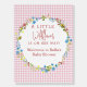 Celebrate the arrival of your little wildflower with this cute Spring or Summer themed baby shower welcome sign! It features a charming wildflower meadow oval wreath design with delicate blue, pink, yellow, red and purple flowers. The backdrop is a pink and white gingham check pattern. This welcome sign perfectly captures the joy of nature and of precious baby girls!