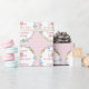 This sweet wrapping paper is perfect for the baby shower guests to use to wrap the new baby's gifts. It features a wreath made up of dainty little wildflowers in blue, pink, yellow, red and purple. The outer edge is pink with two bumble bees landing on some flowers in the wreath. At the top it says "A Little Wildflower is on her way", which matches the invitation. Then it says Congratulations and you personalize with the Mother and Father to be's names an it's all set to use!