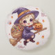 Bring cute and cozy Halloween vibes into your home! 💜🍬 This round pillow shows a cheerful little witch holding a pumpkin and candy basket while flying with her ghostly friends. A soft and playful design that adds warmth and festive fun to any space — perfect for Halloween décor or as a seasonal gift!