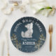 Little wolf themed birthday party monogrammed paper plates, cute wolf pup dark starry night background, young wild and three wolf party personalized table decor printed paper plates