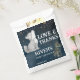 Little wolf themed birthday party wild one personalized favor bags , cute howling wolf pup dark starry night background.