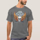 My 11 yo wore adult XL (5’7” 165#). The 8yo is small framed. She wore adult small and tied it in the back. Grandma wore adult large with long sleeve shirt underneath. Tall girl adult medium. Dark haired male adult large. Good quality dark Heather gray, Gildan brand shirt. -it was next up from basic choice and cost about $20 per shirt. Not too thick or thin. Washed and dried well, no major shrinkage. Not see-through. Can wear a bra under it fine. Screen print is just as shown and well done, front and back.