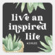 Live an inspired life black and white retro font quote sticker with custom name and watercolor succulent plants.