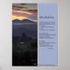This poster is divided into two sections. On the left is an enchanting photo of an orange and rust-colored sunset dipping behind distant mountains; thick dark green trees and twinkling city lights fill the foreground. Muted tones contribute to a somber feel. On the right side of the poster an inspirational quote appears on a gray-blue background; a golden yellow line separates the two sections. Quote: “Live Each Day…with the compassion to care, and the courage to act on it – to support a cause that moves you; to help someone who needs you…the perspective to value substance over show, people over things, and self-worth over glory…the ability to appreciate what you have, love what you do…and know who you are.” Photo by Robert Seals. Infinnite products feature the work of top-selling inspirational writer Paula Finn. If you don’t find exactly what you want…please let us know!