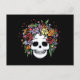 Pretty skull with a bouquet of flowers hair. Colorful, t-shirts, sweats, cards, gifts.