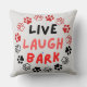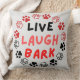 This design features a circular design with the words "Live Laugh Bark" written in bold, colorful letters. Surrounding the words are paw prints in alternating red and black. The paw prints create a frame around the text, adding a playful and whimsical touch to the design. The overall image is cheerful and positive, suggesting a love for dogs and a carefree attitude towards life. This design would be perfect for dog lovers.