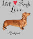 Celebrate life, have fun and share love with this design of Live, Laugh and Love a Dachshund. Great for yourself and as a gift for Doxie-loving family and friends.