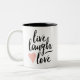 Modern Live Laugh Love Coffee Mug created by Colourful Designs Inc. This modern and stylish coffee mug is a perfect gift for under twenty dollars. The beautiful typography and gold foil heart make it a chic gift that you can be proud to give out. Copyright 2016