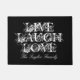 Live Laugh Love doormat with custom family name. Add your own personalized surname. Vintage typography template with elegant script lettering. Black and white door mat design for home or vacation house. Available in medium and large. Beautiful home decor gifts for friends, family, couple etc.