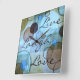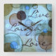 Made on a blue, brown and green grungy background with circle and square shapes and inspired with "Live Laugh Love".