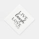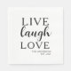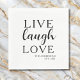 Modern style 'live, laugh, love' custom name and year established napkin design is perfect for anniversaries. Simple black and white typography design.