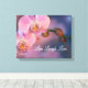 Image and illustration com[position of Pink orchids, artistic photography on canvas. Beautiful lavender-pink orchids on stretched canvas with the words, "Live,laugh, love" The text can be changed to your favorite daily affirmations..