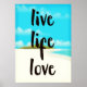 Live Life Love inspirational positive quote on a hot sandy Caribbean tropical beach.