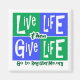 Promote Organ Donation a very simple way by putting this magnet on your fridge or on your filing cabinet at work. Also makes a great gift. The iconic green and blue Donate Life colors are the main colors highlighted in this design. Live Life then Give Life magnets.