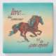 This is a Unique "One of a Kind" Southwest Horse Stone Coaster! It Features a Galloping Southwest Horse in Turquoise, Orange and Black on Turquoise and Orange Sunset Background and the Inspirational Quote....Live Like Someone Left the Gate Open!