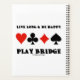 If you desire to live longer and be happy and are a bridge player, you'll enjoy this bridge planner featuring the four card suits along with the saying "Live Long & Be Happy Play Bridge". Sound bridge advice planner for any avid bridge / duplicate bridge player - no matter what age!