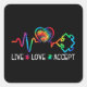 Live Love Accept Autism Awareness Heart Beat Mom D Square Sticker