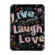 An inspirational and positive design featuring the words live, love and laugh. Great for get well, birthday, thank you's and more.