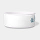 Cute pet bowl for your dog! The text says "love love bark" in a font with hand written like brush strokes. There are paw prints on both sides. Your puppy's name can be added at the bottom. It is in pretty dusty blue color.