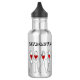 Fun "live love coach netball" stick figures with red heart on a stylish water bottle. This would make a great gift idea for netball coach.