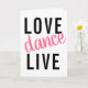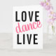 A simple bold statement of Love Live & Dance in black and pink typography.