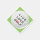 these napkins feature an image of a golf ball, and the text live love golf on the ball. The o in golf has the image of a golfer taking a swing in red. You can customize everything to your own idea.