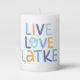 Celebrate the joy of Hanukkah with this colorful "Live Love Latke" design. Featuring bright colors and playful typography, this graphic is perfect for a variety of products, from home decor to gifts. Add a touch of holiday spirit and deliciousness to your space with this fun and festive design.