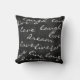 This quote accent pillow has live love laugh dream text design in a white text on textured charcoal gray modern style.