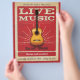 Ready to promote your upcoming music gig? Personalize this awesome Live Music Acoustic Guitar Flyer with all the information to bring in the music fans! Great for single musicians, singers and bands! Acoustic guitar with LIVE MUSIC text. Edit or delete the text lines you don't need.