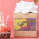 shows colourful acoustic guitar with yellow patina from original art ! also "Live Music" slogan