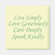 Live Simply, Love Generously, Care Deeply, Speak Kindly. Words to live by every day. Designed to go on a green background