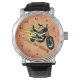 This Live to Ride - Motorcycle Watch features a firery orange background, a black and orange motorcycle with yellow and orange flames. Stylized text is Live to Ride. Watch numbers can be deleted if you prefer your Watch without them. Perfect gift for the motorcyclist in your life! Choose the style and color of your watch! Styles for men, women and children.