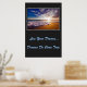 Poster shown with a photo print of a beautiful beach sunset. Poster background is a deep charcoal color.