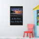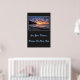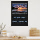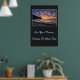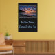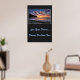 Poster shown with a photo print of a beautiful beach sunset. Poster background is a deep charcoal color.