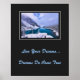 Poster shown with a photo print of a beautiful winter mountain lake scene.